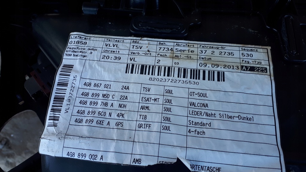Marca, modelo: Audi S7 4G Sportback Quattro Motor: 4.0 TFSI CEUC CEU 420km (309 KW) código da caixa de velocidades; PXK (AUTOMAT) Ano de Produção do Veículo: 2014 Código da Pintura: LZ9YPRZEBIEG; 120.009km PEÇA TEM TRAÇOS NORMAIS DE USO ARMAZÉM ÍNDICE ## 0159 $$ ESTANTE && 10 REVISTA SUPERIOR @ 02