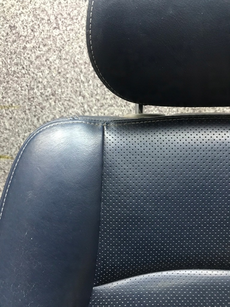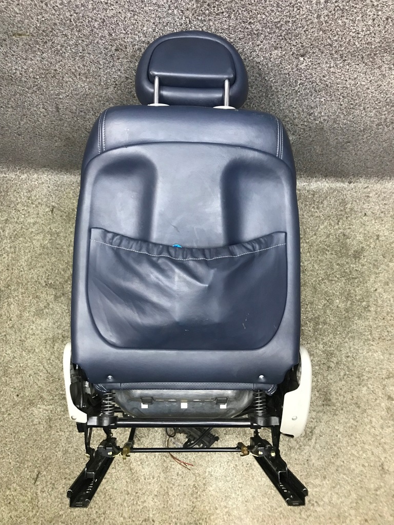 Uma poltrona original e completa com um veleiro. Poltrona de couro, couro ventilado. Tudo em azul/azul marinho. Assento controlado eletricamente (profundidade do assento e inclinação do encosto) e controle manual (banco dianteiro/traseiro e para cima/baixo).