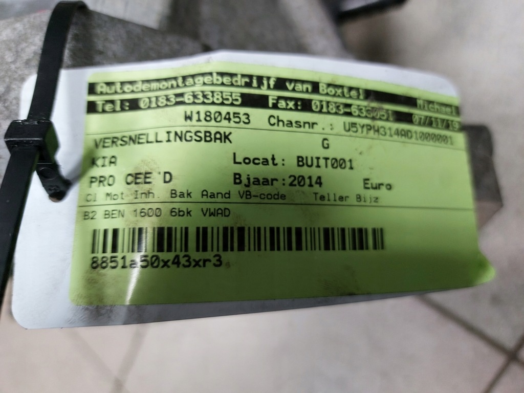 Caixa de câmbio Kia Ceed Hyundai i30 1.6TB WCU60L