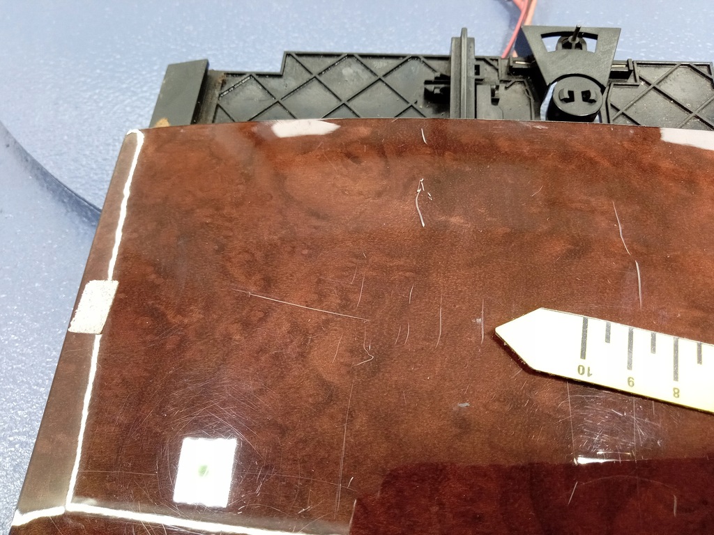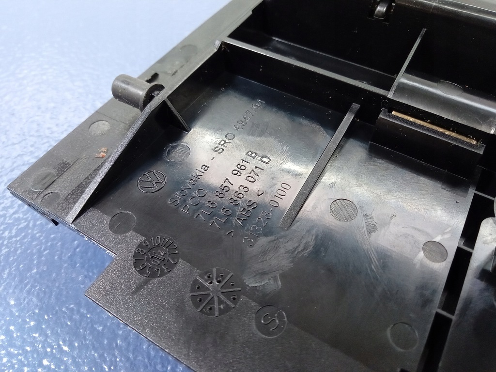 Descrição: madeira de murta escura, sinais de uso, arranhões visíveis nas fotos, prendedores danificados segurando a decoração, -qualidade B && TOUAREG I 7L CINZEIRO 12V TOMADA 7L6857961B