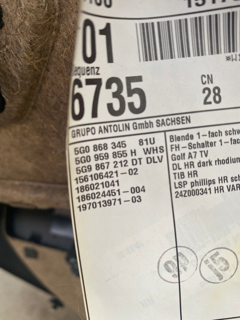 CONJUNTO DE PAINEL DE BOTA VW GOLF VII COMBI EUROPA
