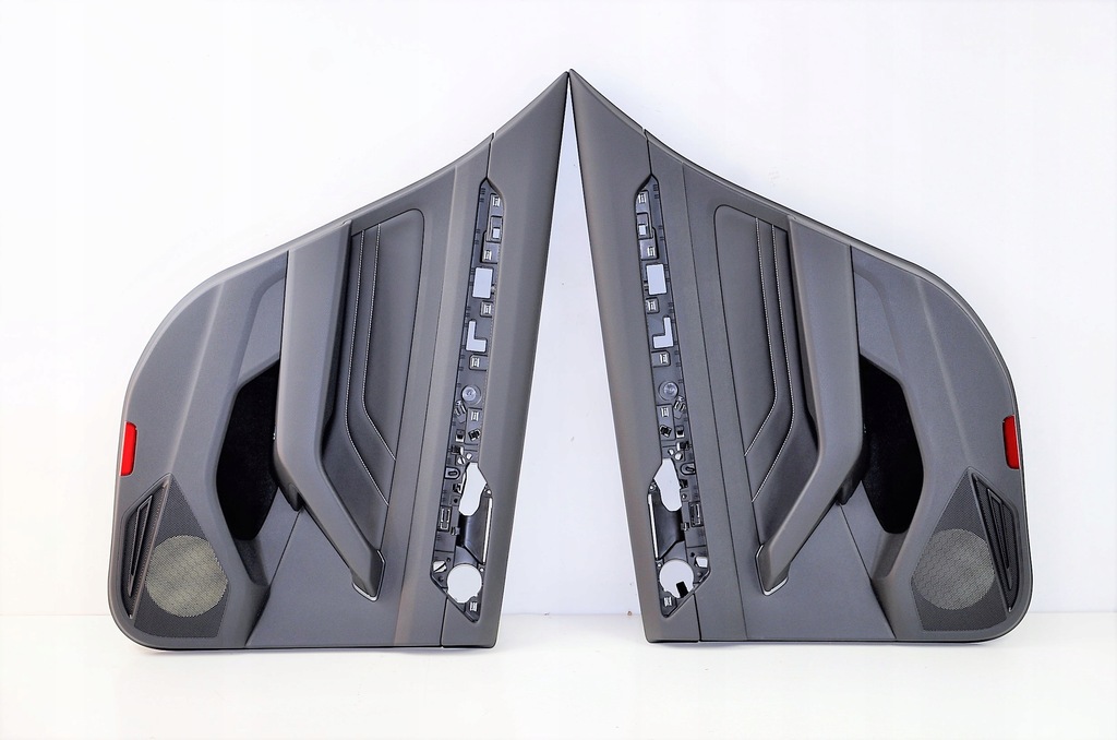 Estofamento original da porta traseira, couro preto com fio branco