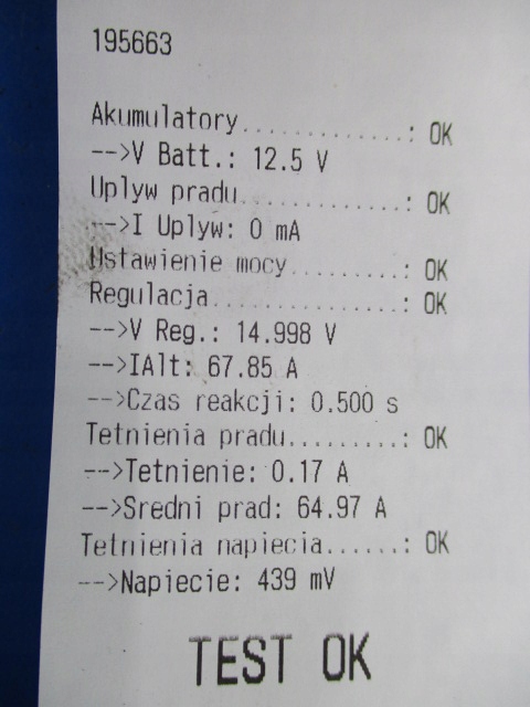 Descrição: testado em aparelho ONYX TMA, resultado do teste na foto (1.8 TDi, 8V, KOMBI) - qualidade && FORD MONDEO MK1 1.8TDi ALTERNADOR TESTADO
