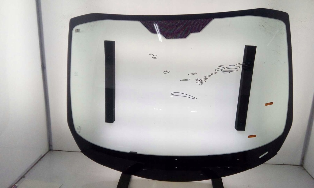 VIDRO RISCADO COM DOIS PONTOS REPARADOS E PROTEGIDOS NOS LUGARES MARCADOS.