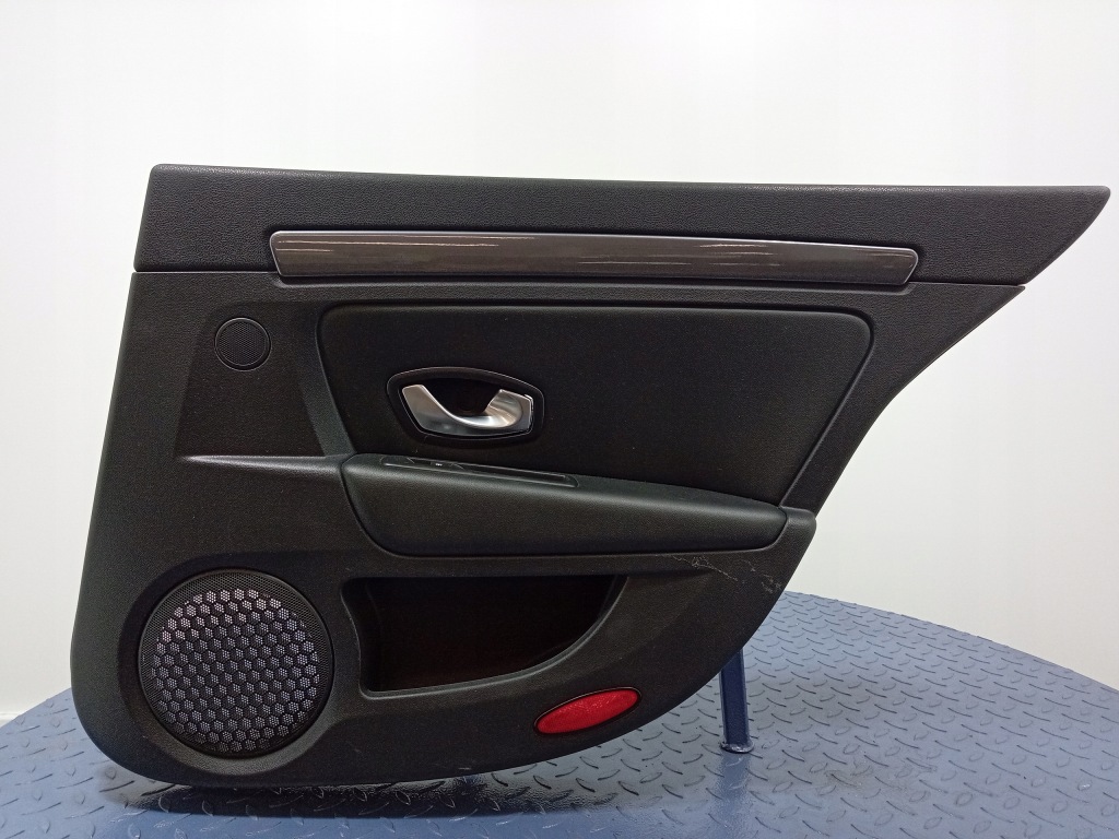 Descrição: estofamento com puxador, decoração, interruptor de janela, couro preto, sinais visíveis de uso, arranhões, -qualidade B && LAGUNA III COMBI ESTOFADO PORTA TRASEIRA LADO DIREITO