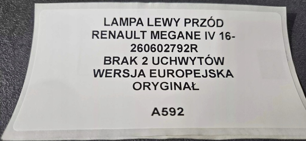 LÂMPADA FRENTE ESQUERDA RENAULT MEGANE IV 16- 260602792R