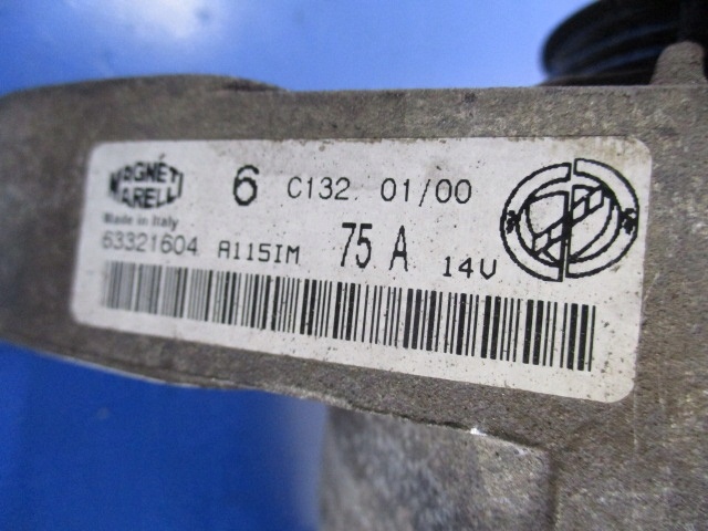 Descrição: MAGNETI MARELLI, 75A, testado em aparelho ONYX TMA, resultado do teste na foto (I, 1.2ie, 8V, 44kW, 60KM, ar condicionado, 3d H/B, código do motor 840A3000) -Qualidade A && LANCIA Y 1.2 ALTERNADOR 63321604 TESTADO