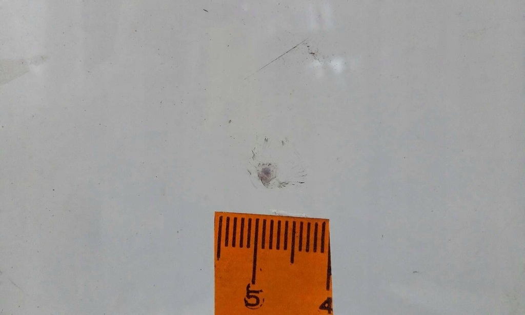 VIDRO RISCADO COM PONTO REPARADO E SEGURO NO LOCAL MARCADO.