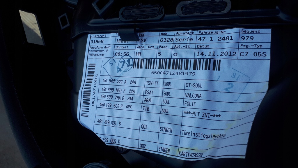 Marca, modelo: AUDI S6 C7 SEDA Motor: 4.0 TFSI CEU CEUC (309 KW) código da caixa de velocidades; NSK Ano de produção do veículo: 2013 código de pintura: LY7G 82.226 quilômetros