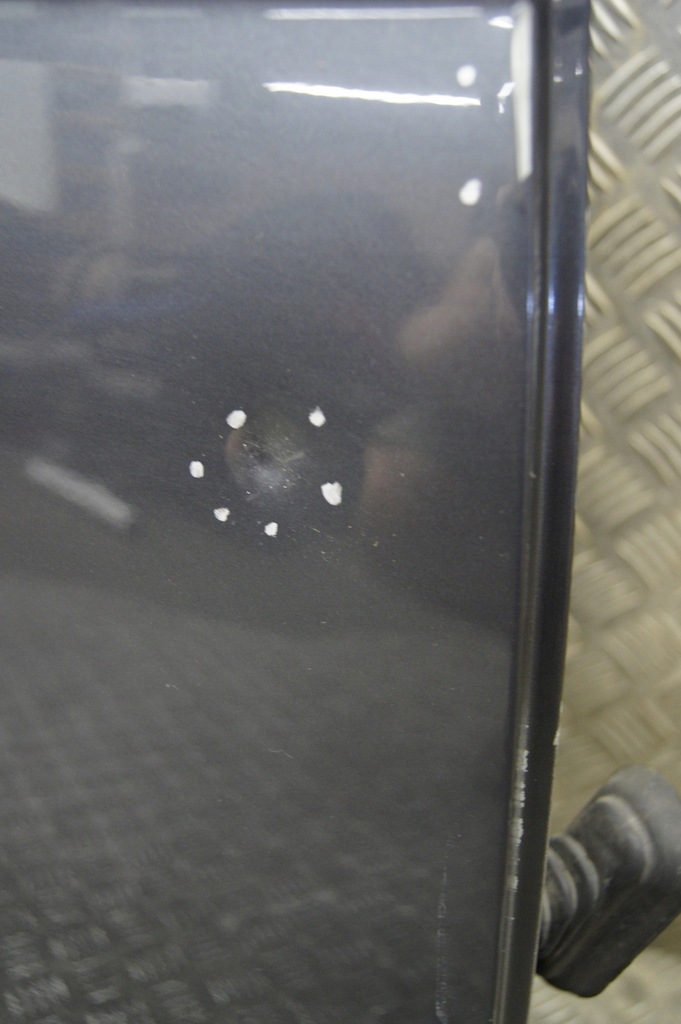 Porta danificada visível na foto