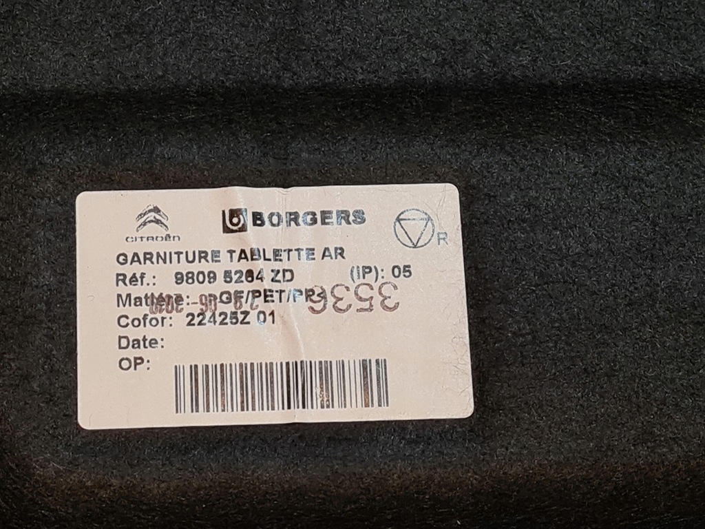 Prateleira do porta-malas original (OE) da Toyota Proace, data de produção: 2019. Cor: preto. A prateleira está limpa e pronta para instalar.