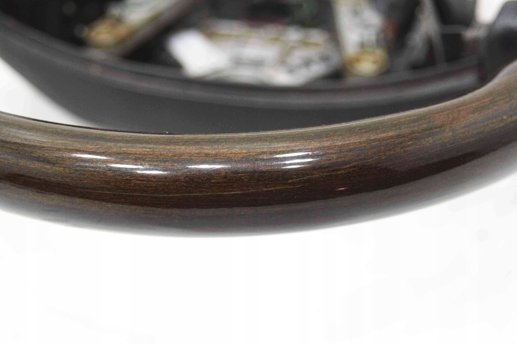 Volante MOMO madeira-couro, couro para regeneração, pequenas rachaduras na madeira são quase imperceptíveis