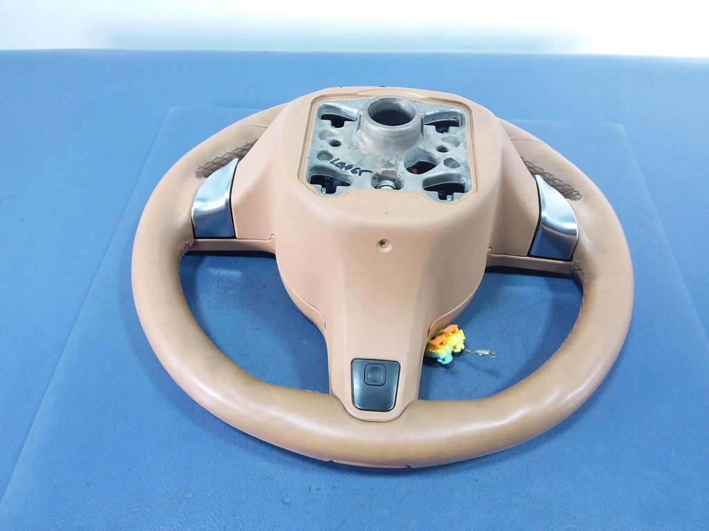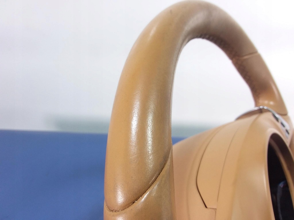 Descrição: Volante em couro conhaque, multifuncional, aquecido, com aletas de câmbio, sinais visíveis de desgaste - qualidade B && PORSCHE PANAMERA I 970 VOLANTE COURO SHIFTERS