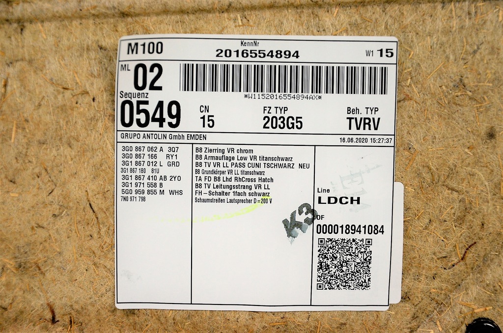| Número da peça | 3G1867012L, 3G1867011L |